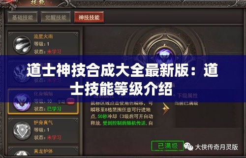 道士神技合成大全最新版:道士技能等级介绍